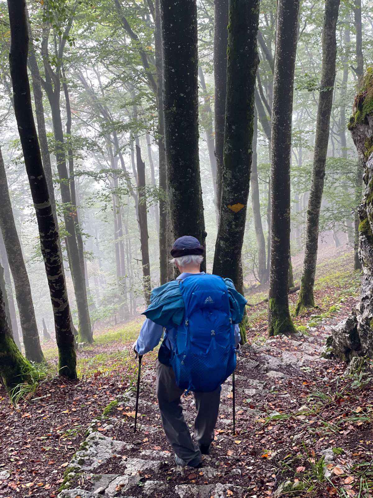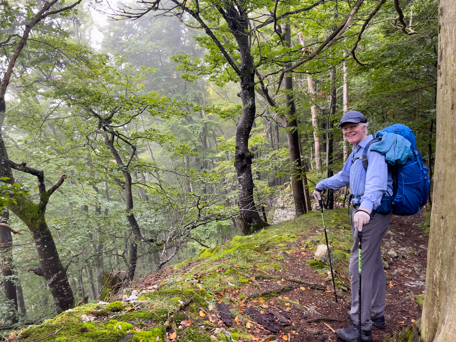 Vandaag volgen we de Jura Crest Trail van Balsthal naar Hotel Weissenstein. Al snel lopen we door de bossen omhoog. Eerst over brede paden, later smallere rotspaadjes. De natuur is fris groen. Het lijkt alsof ze hier geen last hebben gehad van de droogte.