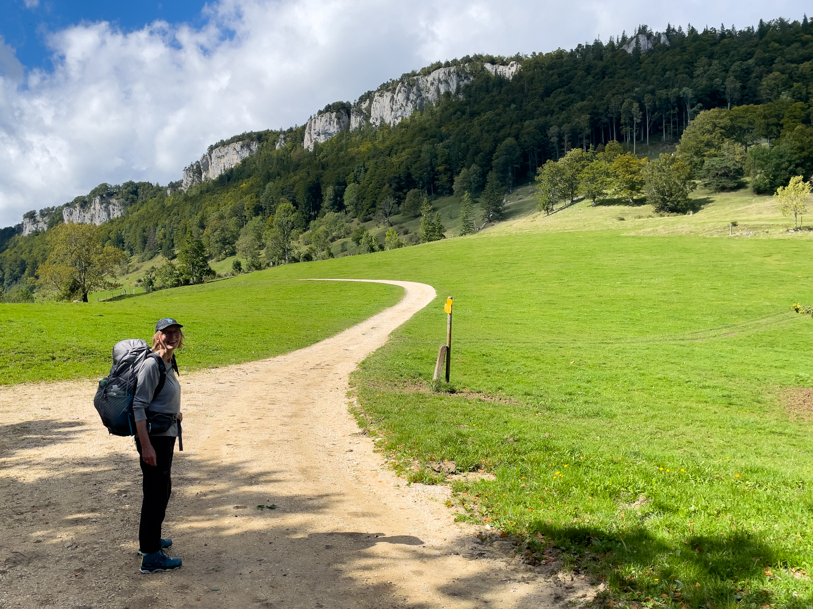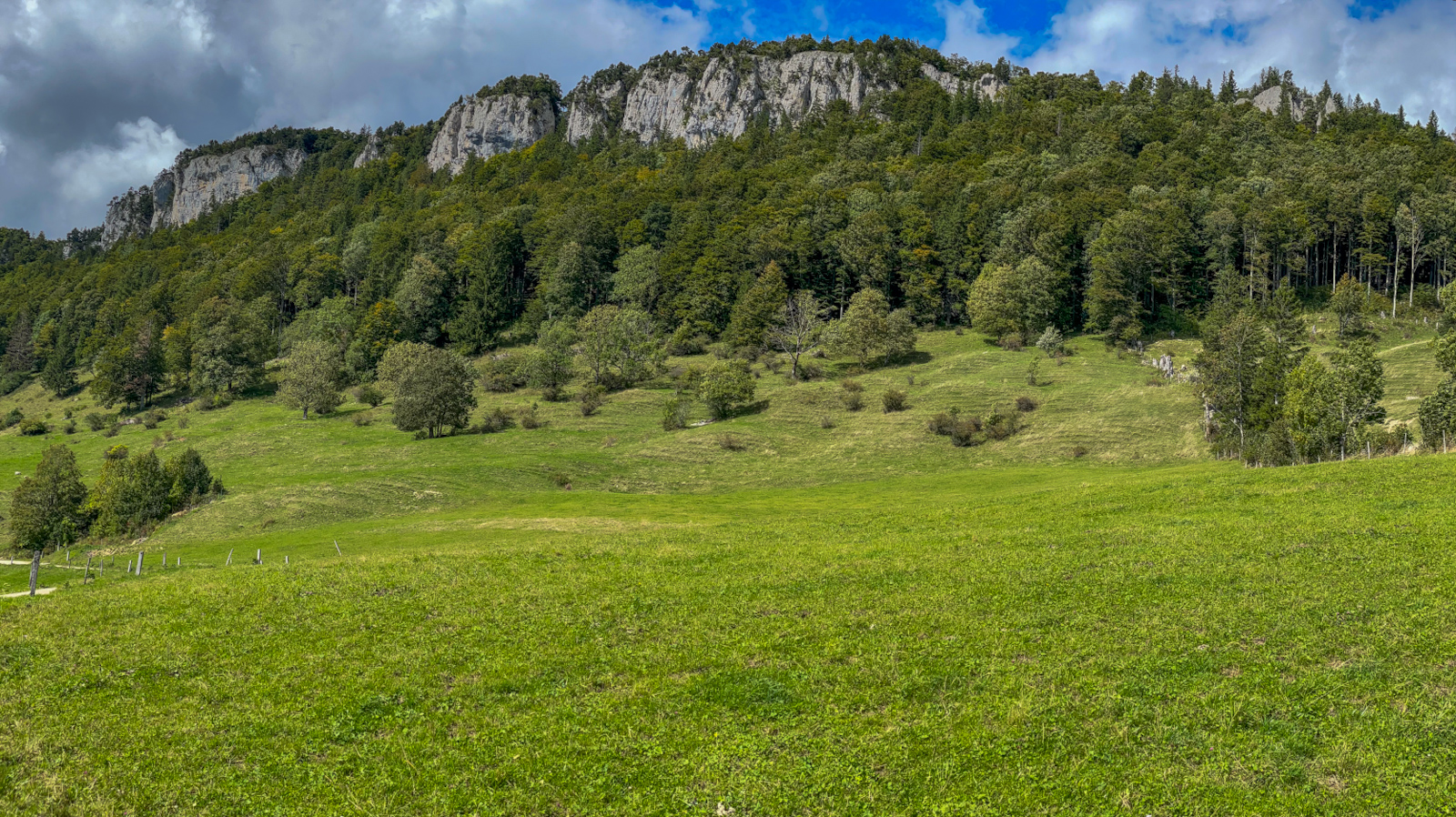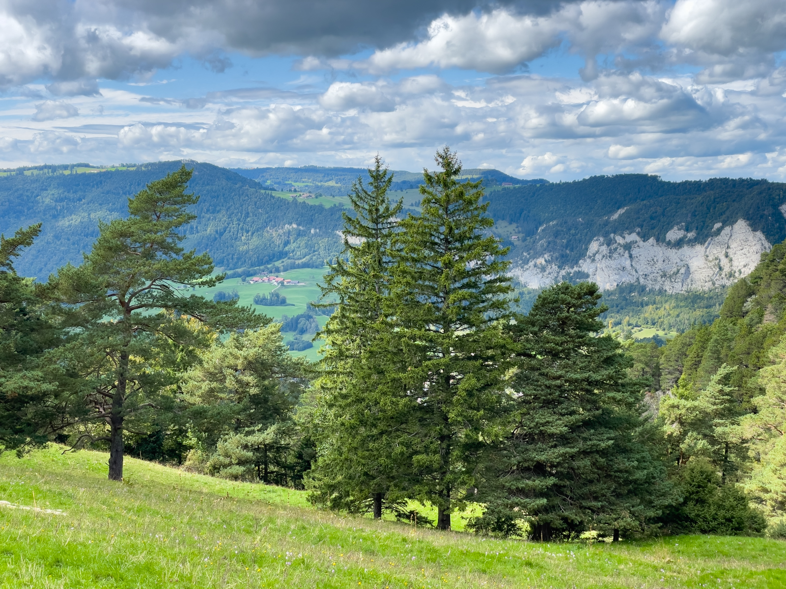 Na de lunch gaat de route verder over prachtige open hellingen en langs karakteristieke Jura-rotsen. We hebben steeds vaker uitzicht op het Mittelland en de Alpen. Het is hier verrassend mooi en zo fantastisch groen.