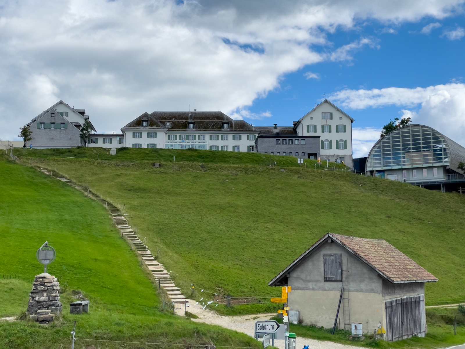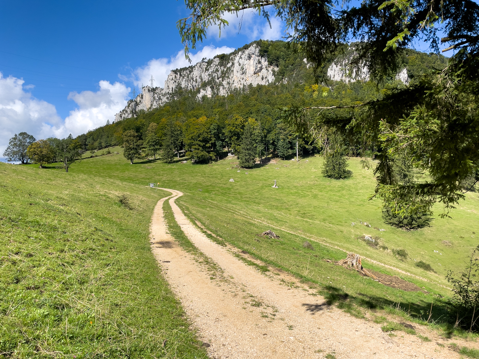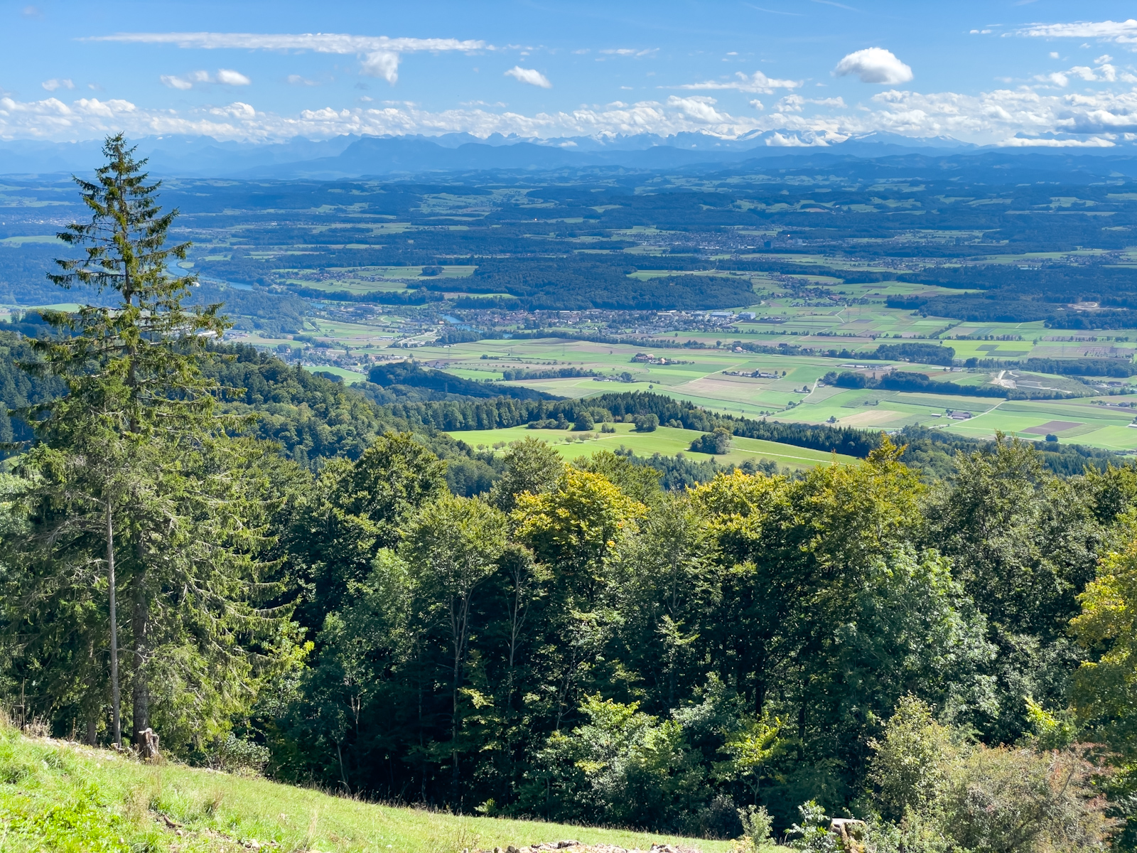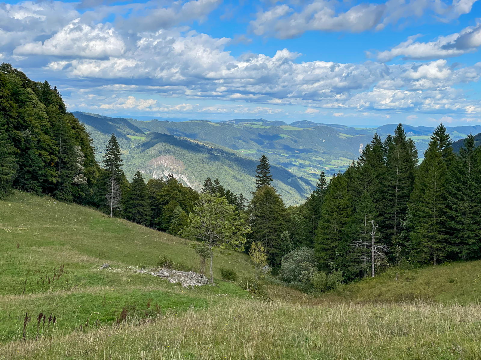 Na de lunch gaat de route verder over prachtige open hellingen en langs karakteristieke Jura-rotsen. We hebben steeds vaker uitzicht op het Mittelland en de Alpen. Het is hier verrassend mooi en zo fantastisch groen.