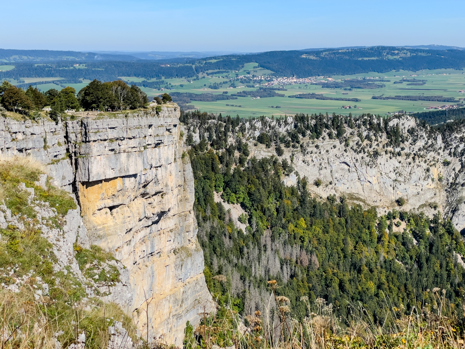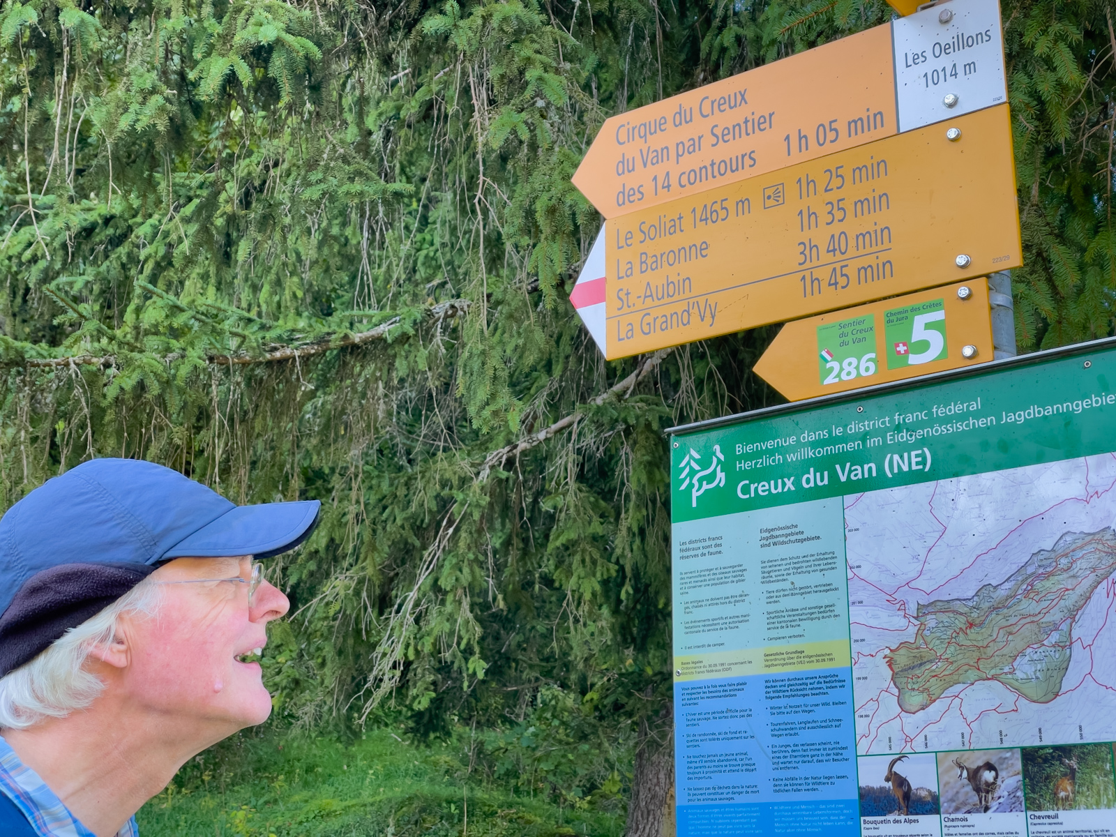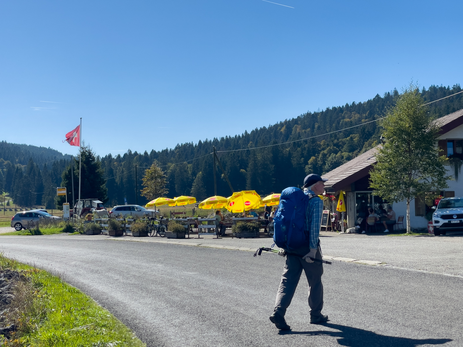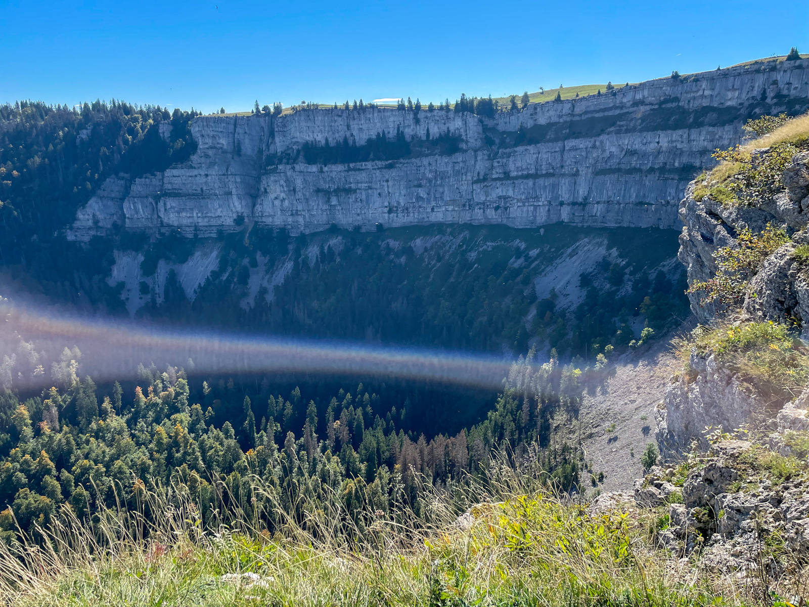 We vertrekken vanmorgen rond half negen uit de goedlopende auberge. Een prettig en schoon verblijf, met veel andere gasten. Waarschijnlijk vanwege de nabijheid van de Creux-du-Van, een indrukwekkende halfronde rotswand met steile kalksteenkliffen. Je kunt er met de auto naartoe, maar ook lopend. De Jura Crest Trail voert erlangs.