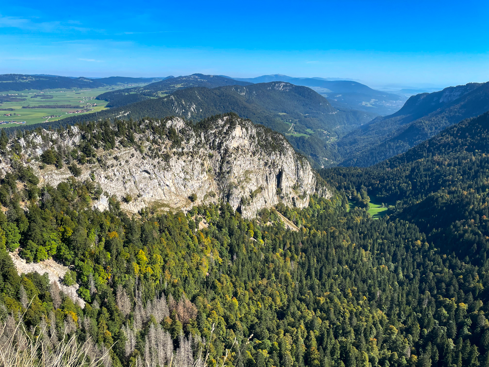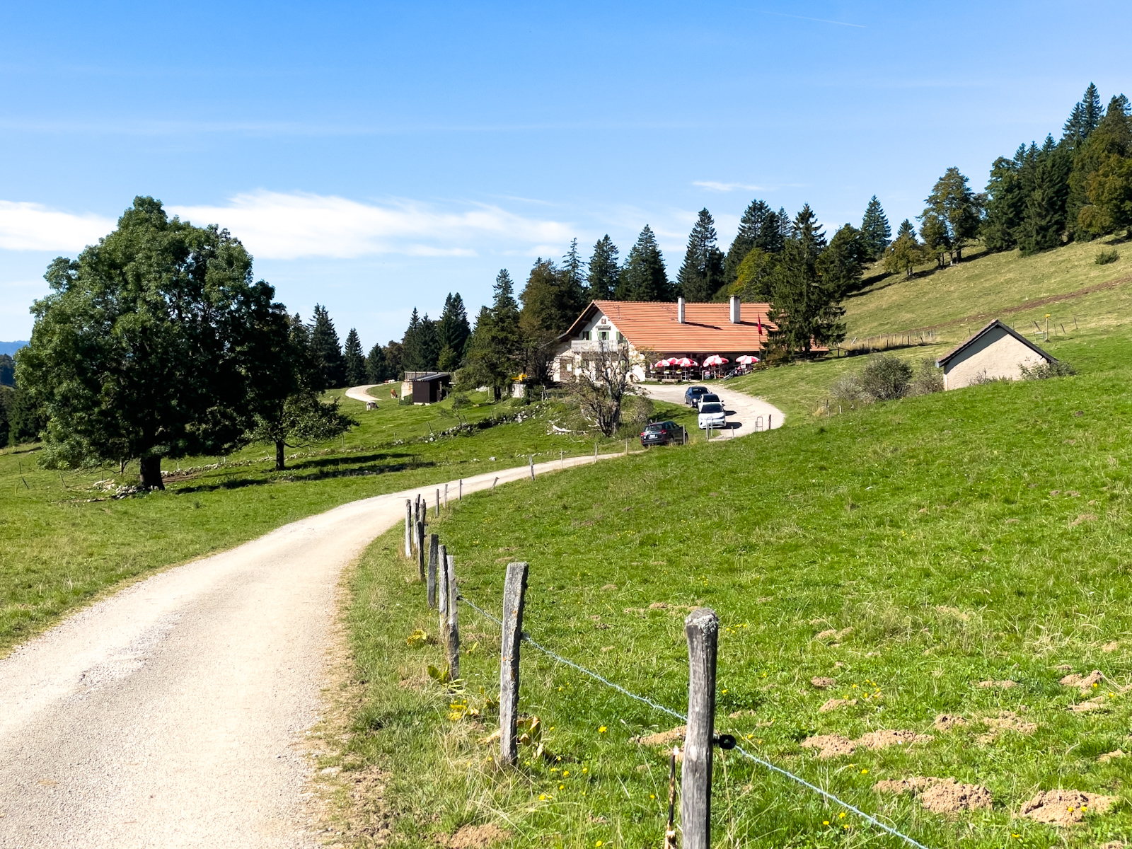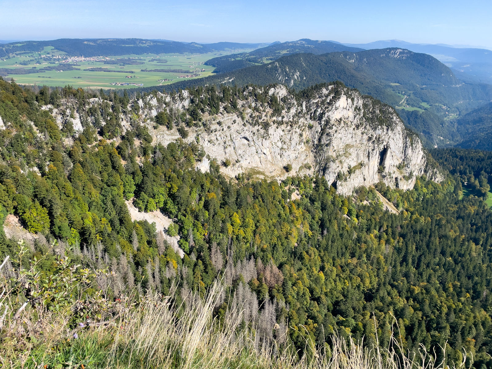 We vertrekken vanmorgen rond half negen uit de goedlopende auberge. Een prettig en schoon verblijf, met veel andere gasten. Waarschijnlijk vanwege de nabijheid van de Creux-du-Van, een indrukwekkende halfronde rotswand met steile kalksteenkliffen. Je kunt er met de auto naartoe, maar ook lopend. De Jura Crest Trail voert erlangs.