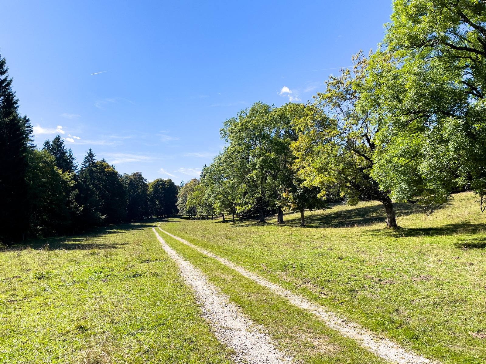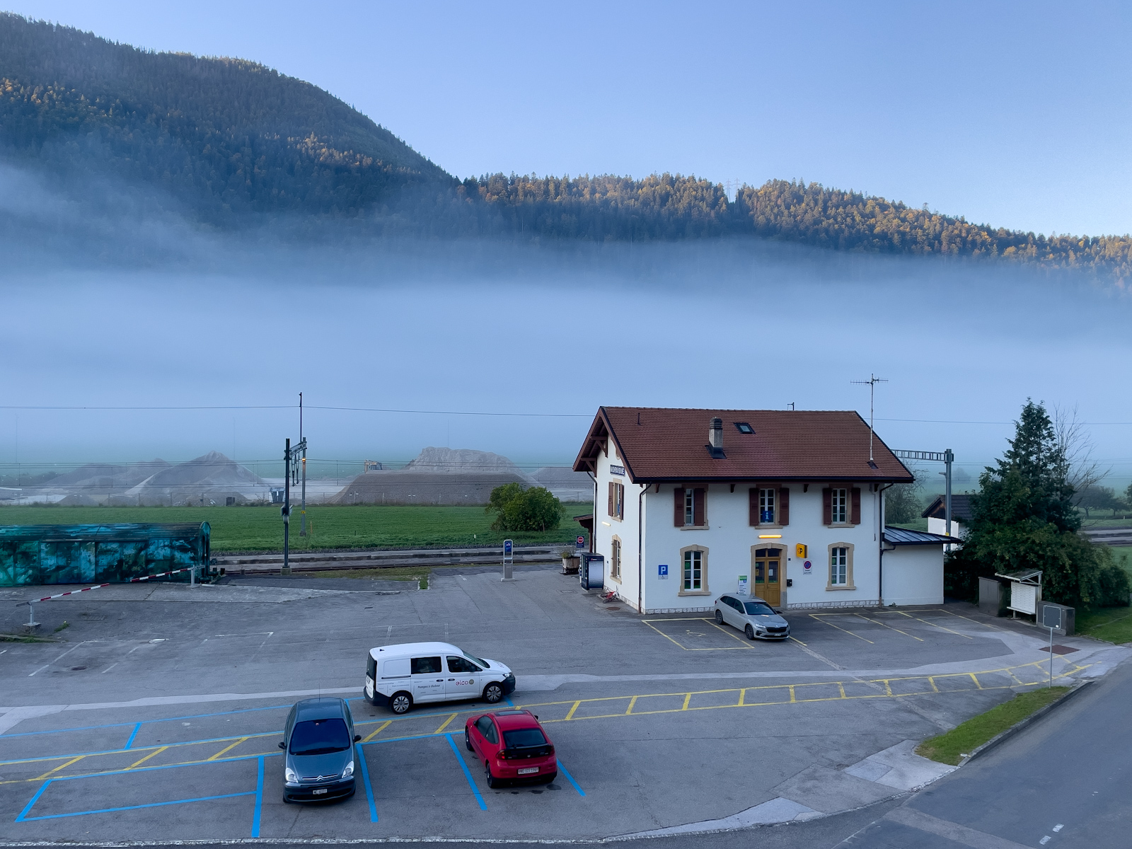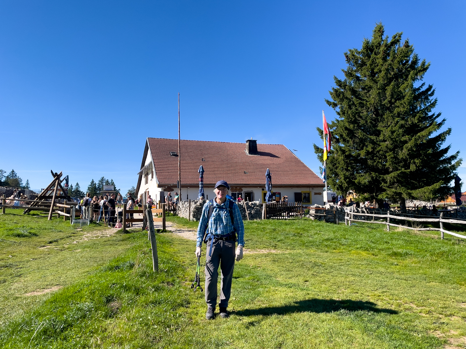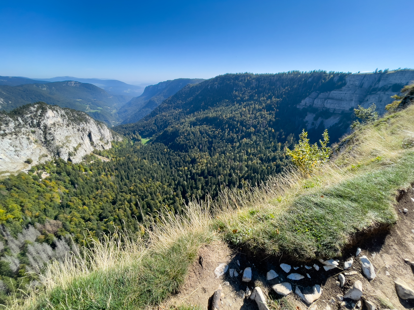 We vertrekken vanmorgen rond half negen uit de goedlopende auberge. Een prettig en schoon verblijf, met veel andere gasten. Waarschijnlijk vanwege de nabijheid van de Creux-du-Van, een indrukwekkende halfronde rotswand met steile kalksteenkliffen. Je kunt er met de auto naartoe, maar ook lopend. De Jura Crest Trail voert erlangs.