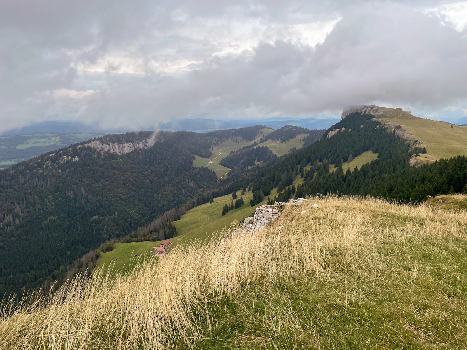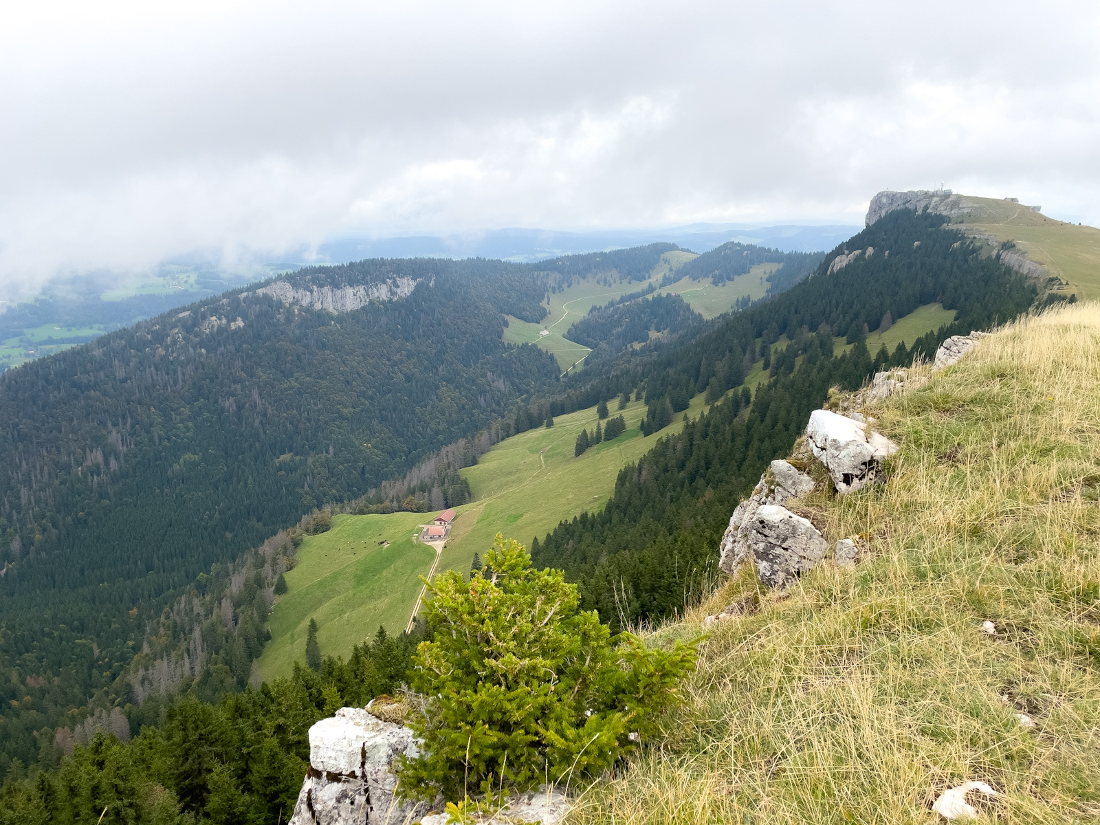 Om negen uur staan we weer bij Restaurant La Combaz en starten de volgende etappe van onze tocht. Hoogtepunt vandaag is letterlijk en figuurlijk de 1607 meter hoge berg Le Chasseron. Niet te verwarren met de even hoge berg Le Chasseral, waar we een paar dagen eerder waren.