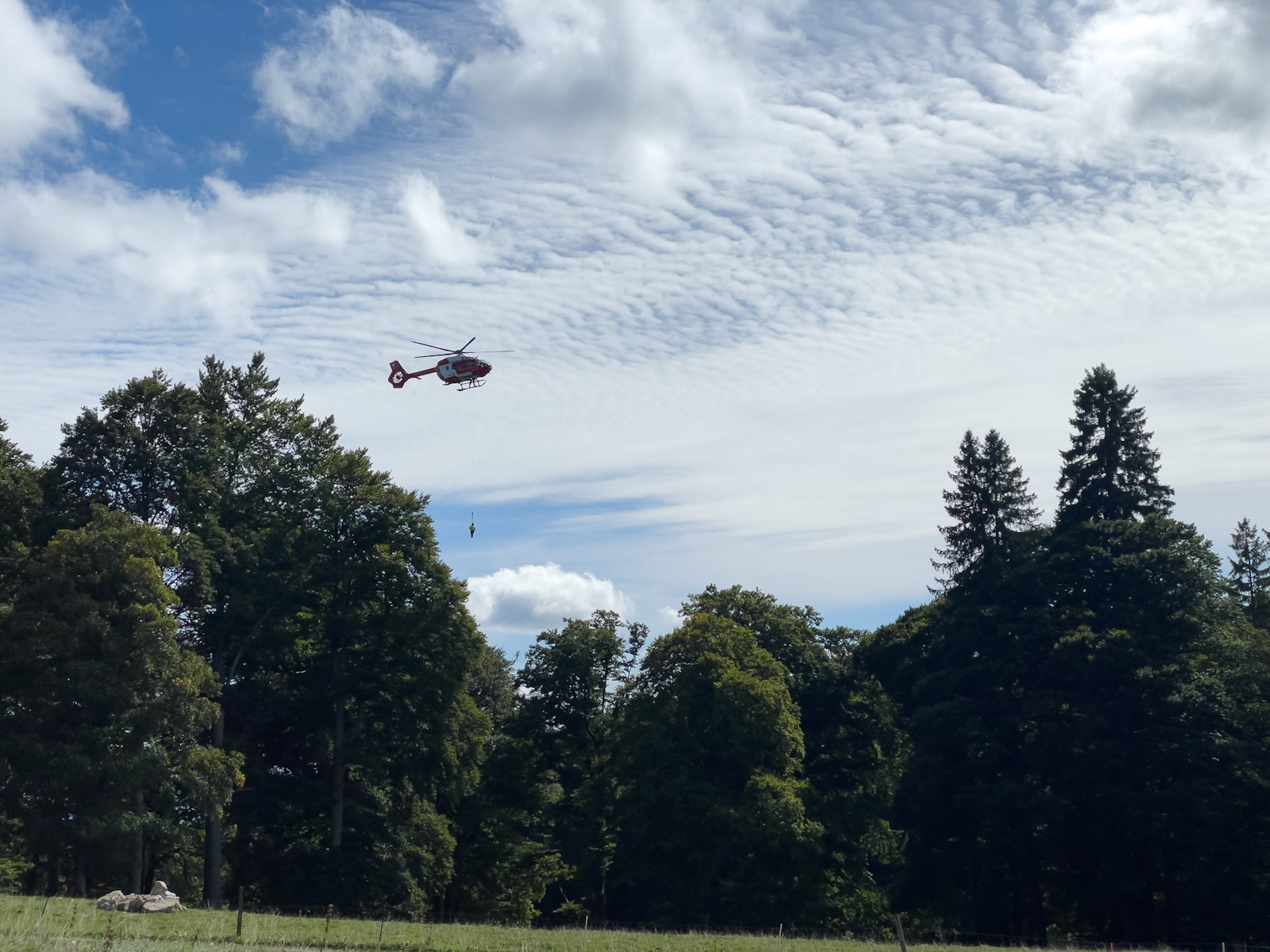 Bij Wasmäli maakt een helikopter flink lawaai. Er is een oefening aan de gang. Steeds worden mensen omhoog gehesen om even later de helikopter in te worden getrokken.