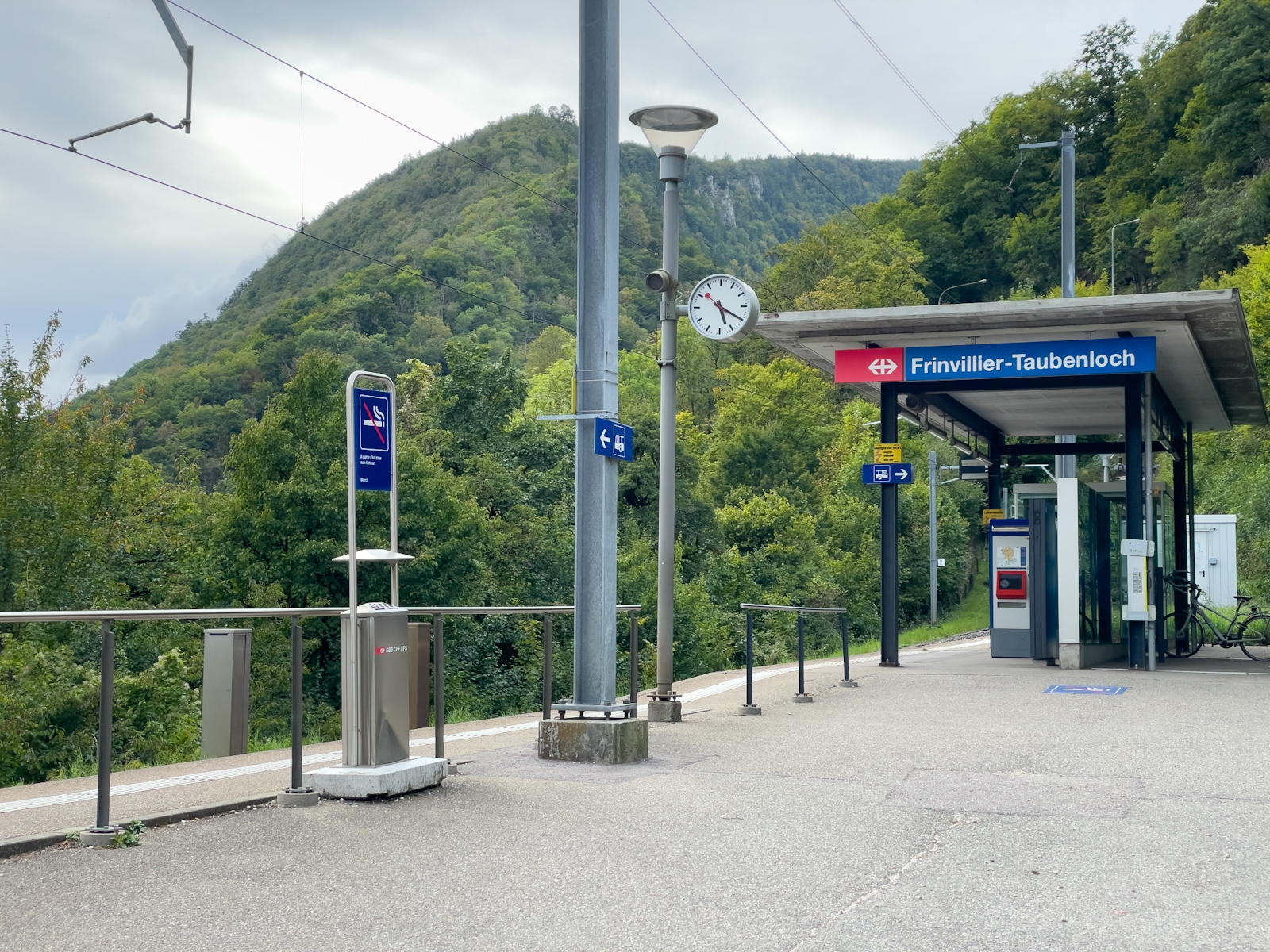De trein komt al snel aanrijden en we stappen in. Maar op het moment dat de trein in beweging komt realiseren we ons dat we in de verkeerde trein zitten. We rijden de verkeerde kant op. Wat stom! Voor niets zo gehaast. Bij het eerstvolgende station (Reuchenette-Péry) stappen we weer uit. We moeten nu een uur wachten op de trein naar Biel.
